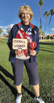 The weather was a little bit cool that morning, but the green came out as we warmed up during the announcement of the winners. It was also announced that, during play, our most improved player got her first hole-in-one. Congratulations to Margaret Battista!