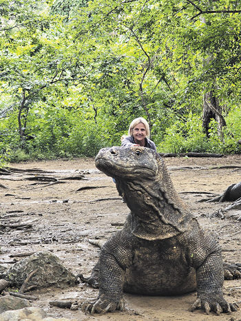 Tami Bogdanoff with the largest living lizard on earth, Komodo Island