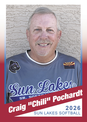 Chili is very grateful for the fabulous camaraderie that exists in the Sun Lakes Senior Softball program. He says, “Where else can you play a couple softball games starting at 9 a.m. or noon, two to three times per week, and then sit down with guys from both teams and laugh at each other’s errors and mistakes and applaud the great plays. Good times!”