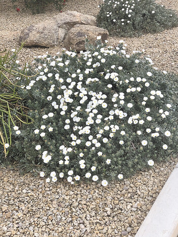 Look around our community and you’ll see silver grey bushes. They don’t stand out, but they are everywhere. It’s a quiet bush of sorts in that it’s not beautiful or brightly colored, just plain and simple. But look again and you’ll see that it can be quite pretty. Better yet, it is a very easy plant for the beginning desert gardener.
